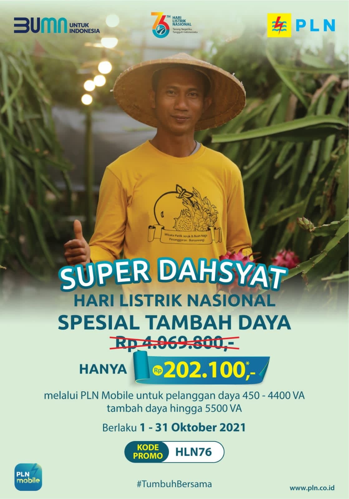 Untuk mengikuti Promo Listik “Super Dahsyat”, pelanggan bisa mengakses aplikasi PLN Mobile dengan melakukan _redeem_ kode promo HLN76. Agung menyebut promo listrik “Super Dahsyat” lebih mudah diakses berkat kehadiran PLN Mobile yang memberikan solusi pelayanan.