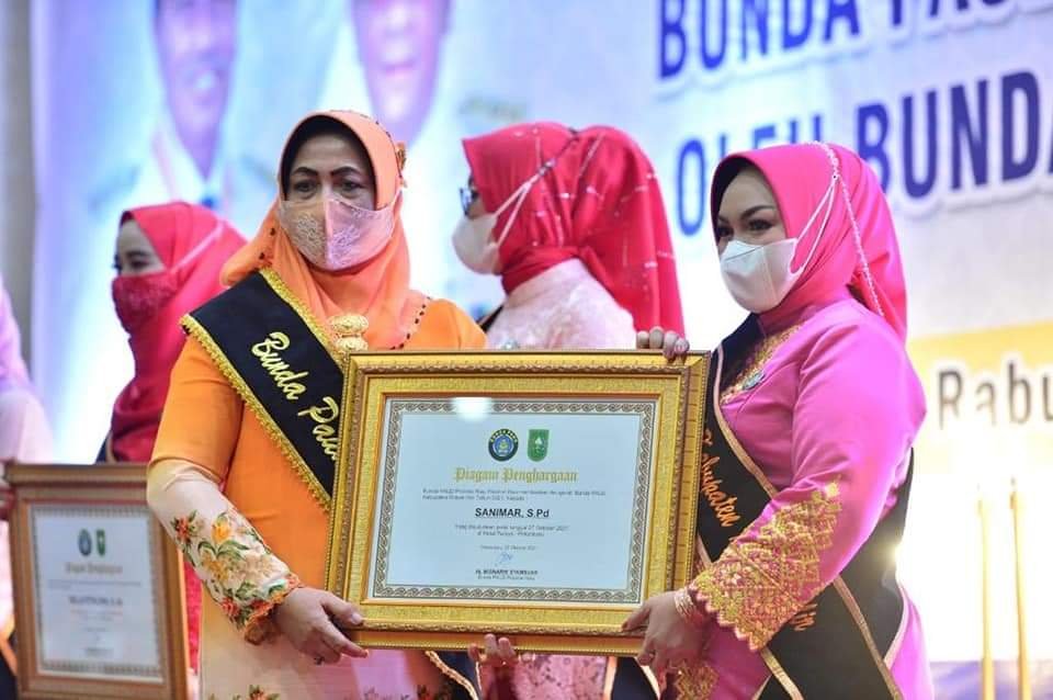 dengan tetap melaksanakan Protokol Kesehatan ketat. Selain dari Ibu Sanimar Afrizal Sintong juga ada beberapa Bunda Paud yang dikukuhkan bersamaan yaitu Bunda Paud Kabupaten Pelalawan, Meranti serta Kota Dumai.