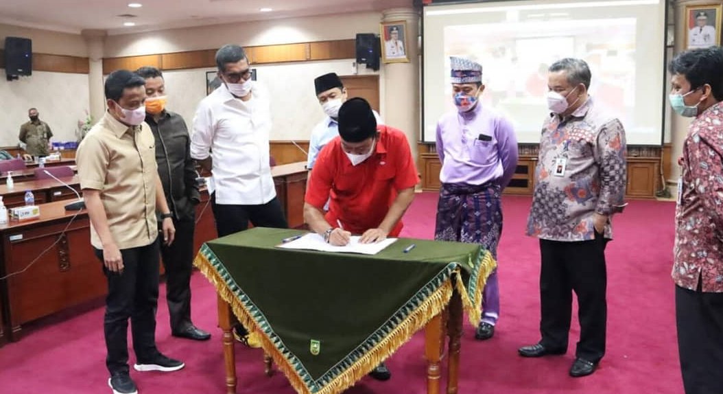 Rapat ini diakhiri dengan penandatanganan hasil evaluasi Rancangan Peraturan Daerah