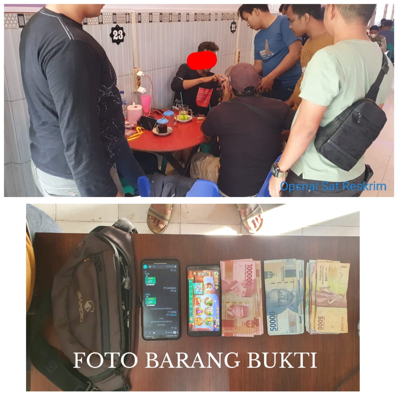 Hasil penangkapan tersebut, Polisi berhasil mengamankan barang-bukti (BB) Uang tunai Rp. 2.347.000, 1 buah Akun Higgs Domino dengan Id (47800878), 2 Unit Handphone Merek Redmi warna Biru dan Merek Xiomi warna Hitam dan 1 buah tas merek gardio warna coklat.