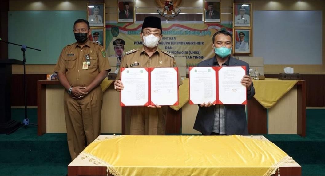 Tembilahan(SegmenNews.com)-Pemerintah Kabupaten (Pemkab) Indragiri Hilir (Inhil) melakukan Penandatanganan Kesepakatan Bersama / Memorandum of Understanding (MoU) dengan Universitas Islam Indragiri (UNISI), di Lantai 5 Kantor Bupati, Senin (22/11/2021).
