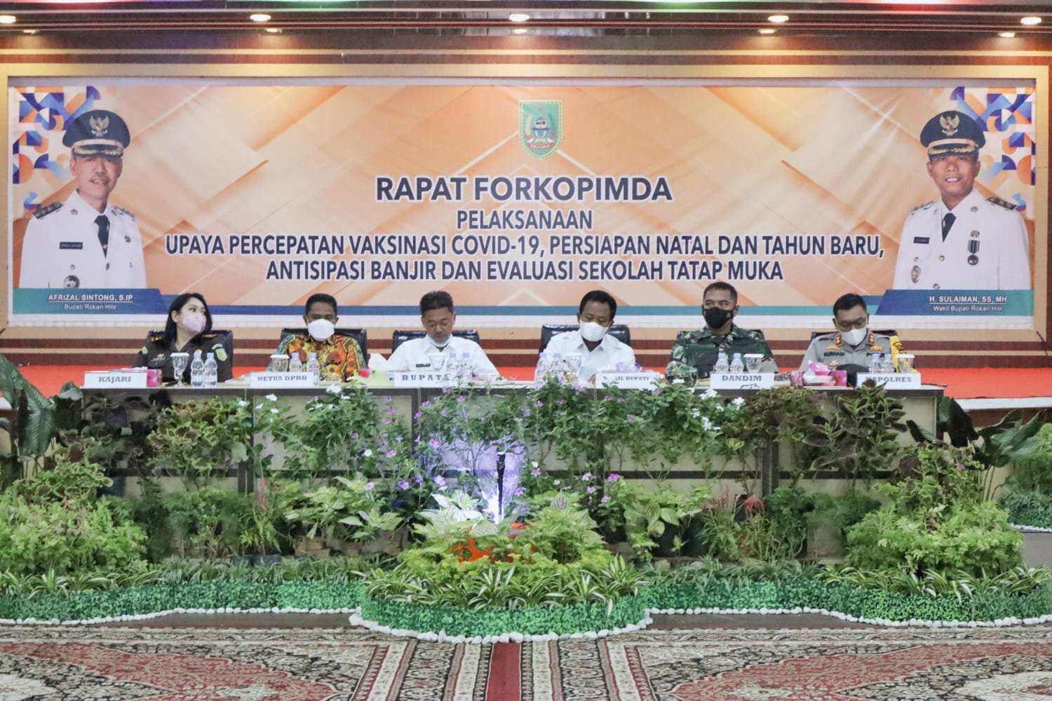 Rohil(SegmenNews.com)- Bupati Rokan Hilir Afrizal Sintong memimpin langsung rapat bersama Forkopimda dalam upaya percepatan vaksinasi Covid19, persiapan Natal dan tahun baru, antisipasi banjir dan evaluasi sekolah tatap muka, Rabu (24/10/2021) di gedung Misran Rais Bagansiapiapi.