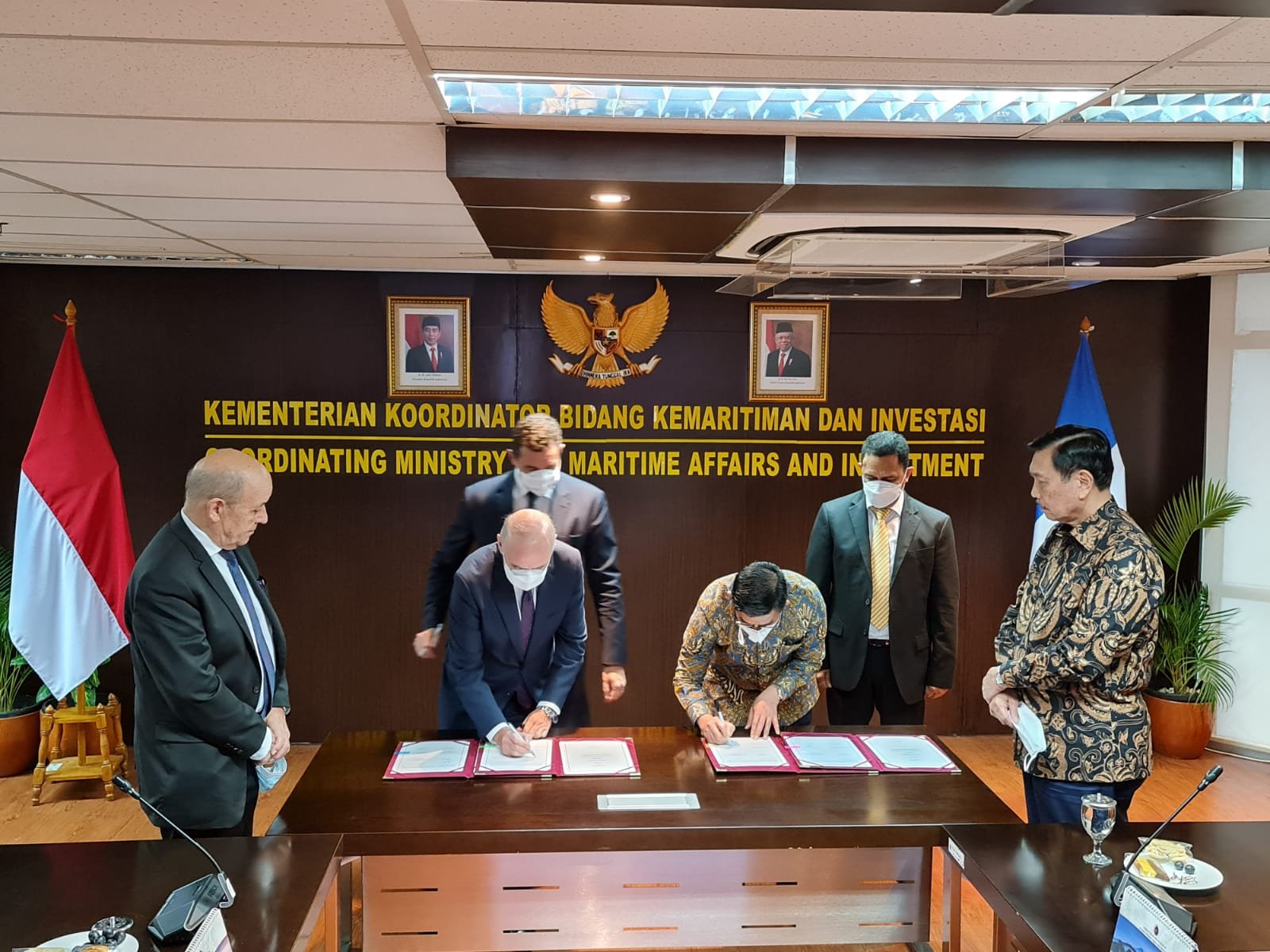 Surat Niatan ditandatangani oleh Deputi Bidang Koordinasi Kedaulatan Maritim dan Energi Basilio Dias Araujo, Direktur Utama PLN Zulkifli Zaini, Duta Besar Prancis di Indonesia Olivier Chambard, dan Direktur Badan Pembangunan Prancis (AFD) Indonesia Resident Mission Emmanuel Baudran, di hadapan Menteri Luar Negeri dan Eropa Jean Yves Le Drian dan Bapak Luhut Binsar Panjaitan, Menteri Koordinator Bidang Kemaritiman dan Investasi.