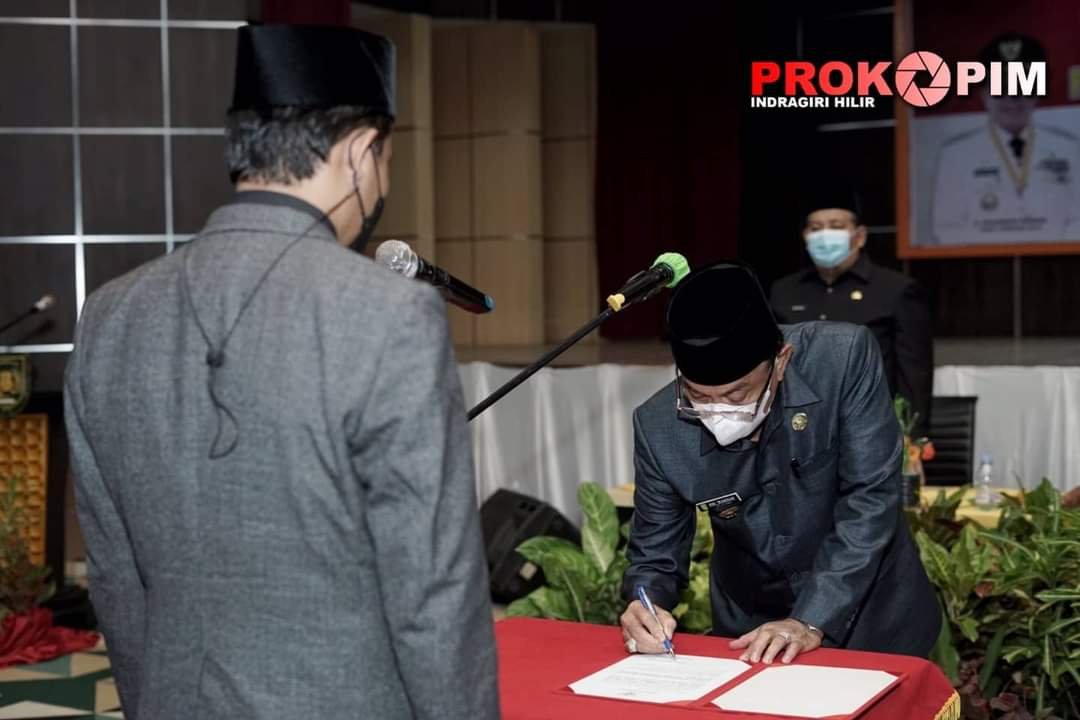 Pelantikan tersebut dilaksanakan di Gedung Engku Kelana Jl. Telaga Biru Tembilahan, dalam kegiatan juga dilaksanakan pengambilan sumpah / janji jabatan.