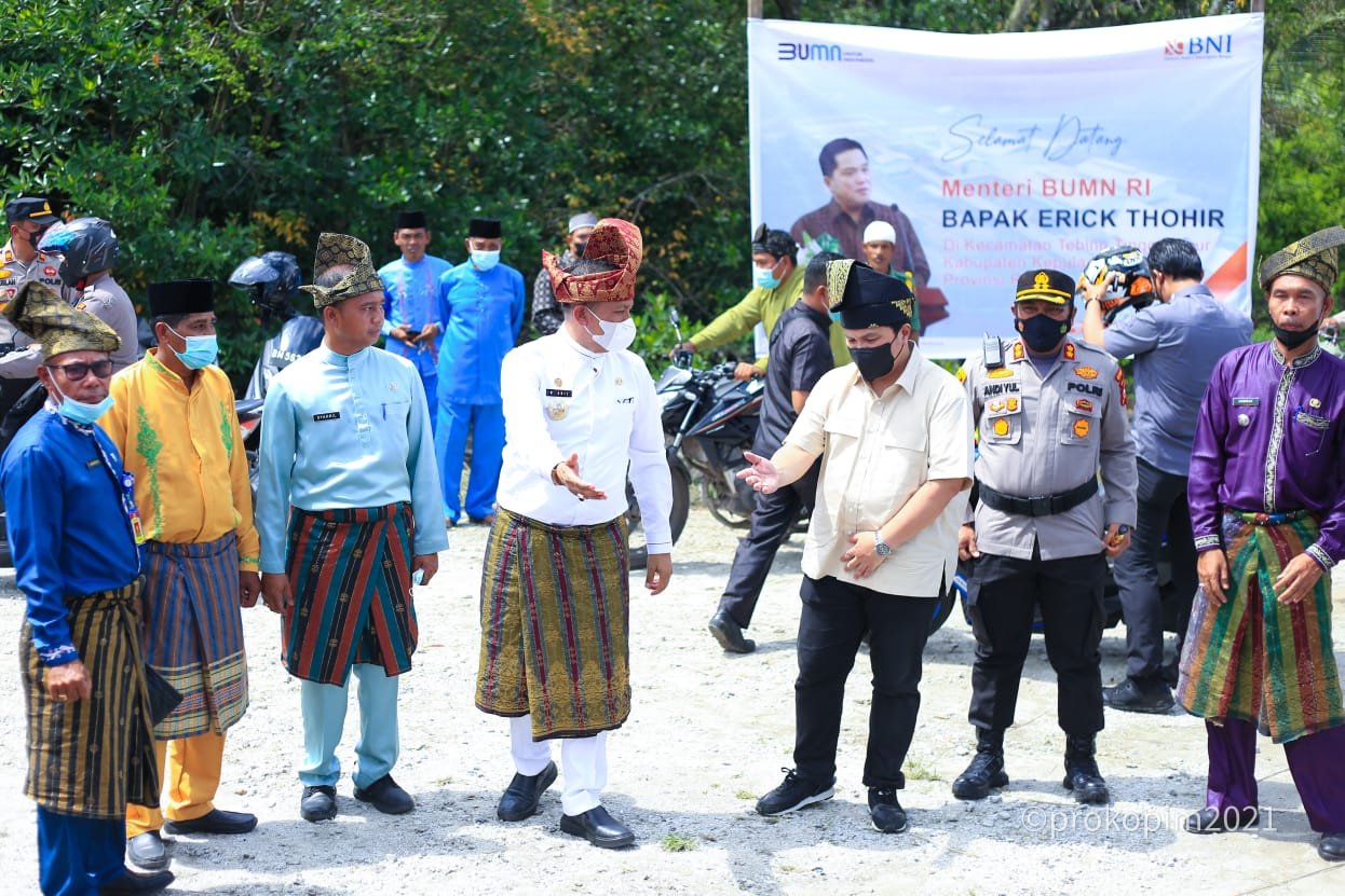 Meranti(SegmenNews.com)- Bupati Kabupaten Pelalawan, HM Adil, SH menyambut kedatangan Menteri BUMN Erick Thohir saat melakukan Kunjungan Kerja di Kecamatan Tebing Tinggi Timur, Kabupaten Kepulauan Meranti, Provinsi Riau, Jumat(26/11/2021).