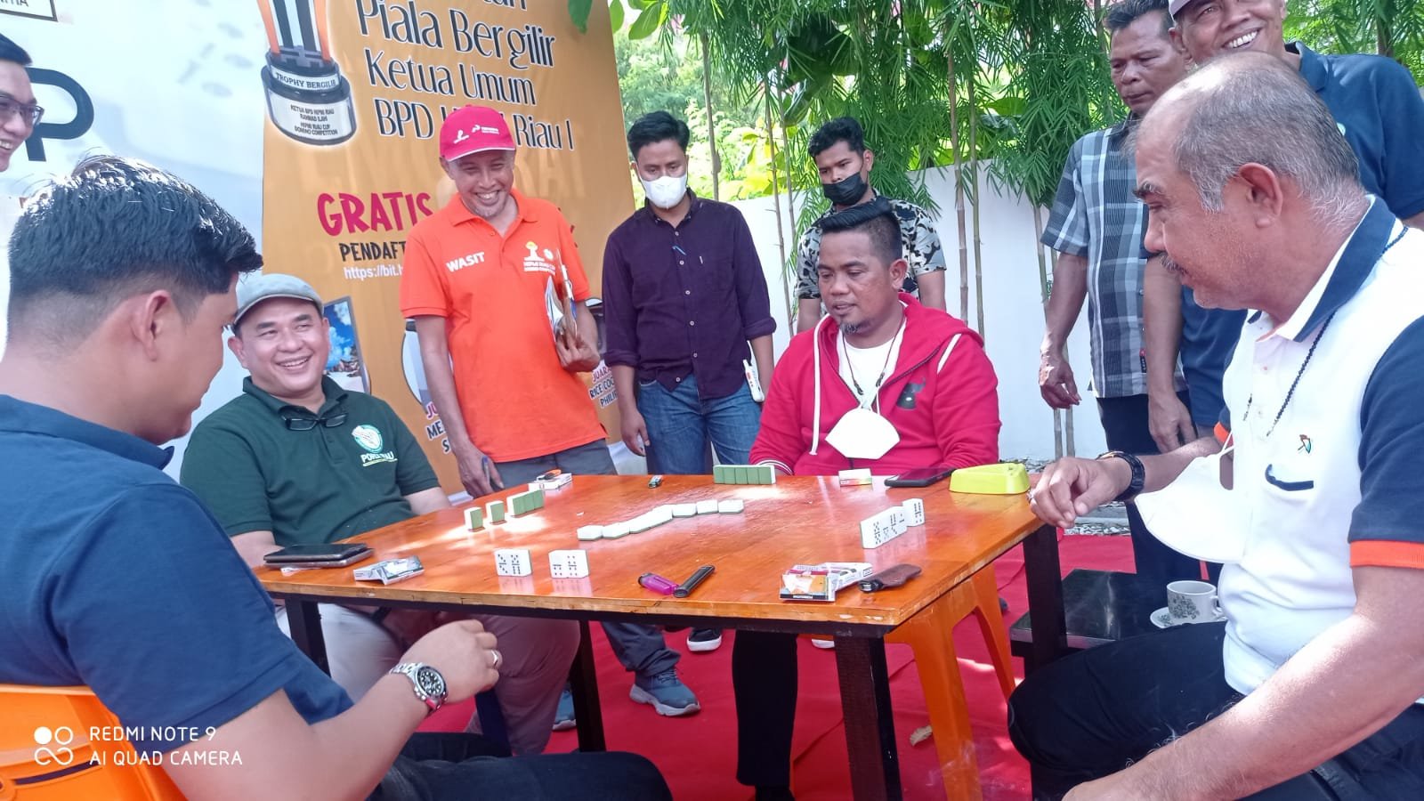 Pembukaan Domino Open Tournamen yang berlangsung selama dua hari yakni mulai Minggu (28/11/2021) dan Senin (29/11/2021) ini diwarnai dengan pertandingan eksebisi antara pasangan Zulmansyah Sekedang-Dastrayani Bibra melawan pasangan Bupati Pelalawan Zukri-Ketum HIPMI Riau Rahmad Ilahi.