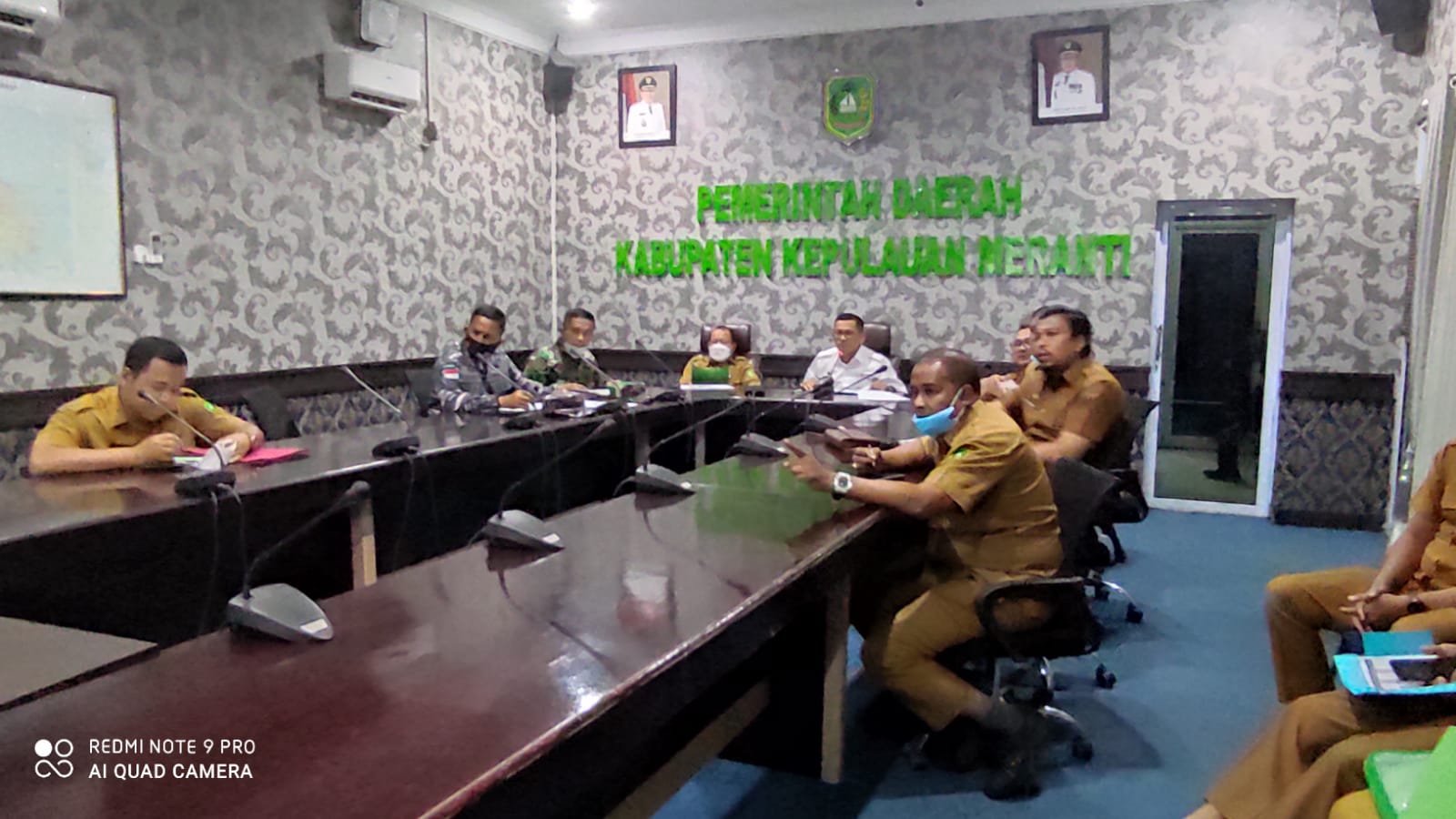 Didampingi oleh Plh. Sekda, Asisten III, Damramil, Dampos-TNI AL, Kadis Kesehatan, Kadis PMD, Kadis Capil, Kepala BPBD, Kadis pendidikan, dan kabid BKD, meminta seluruh camat, dan kepala desa untuk mengejarkan target vaksinasi 70 persen.