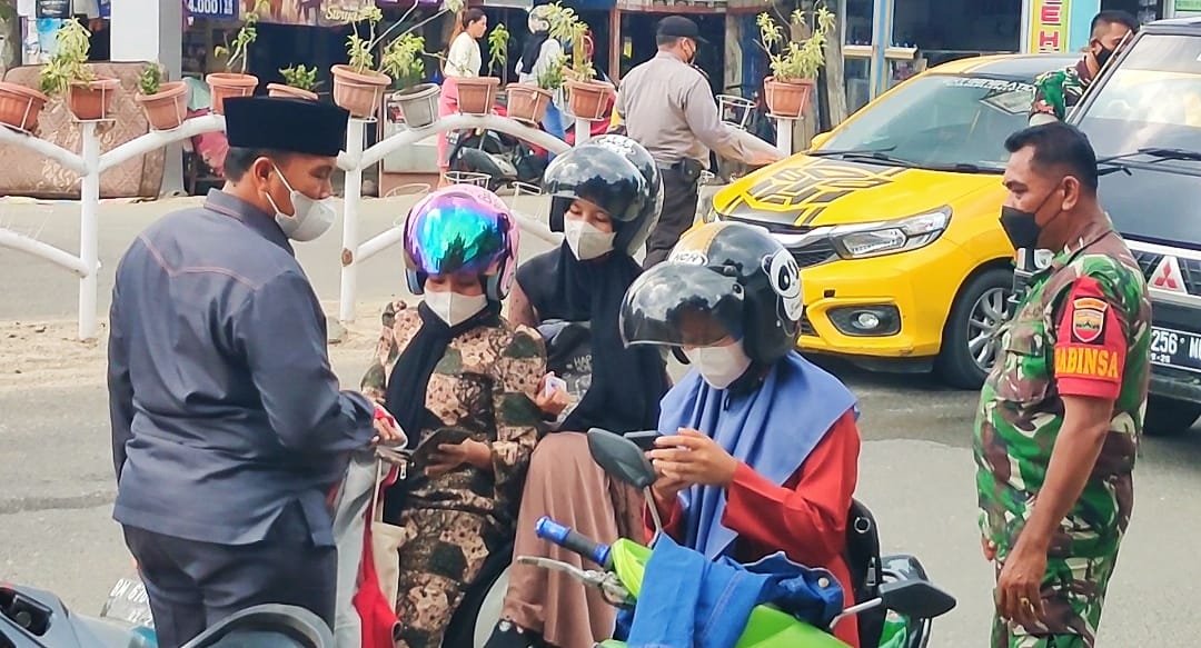 Rohul(SegmenNews.com)- Tidak hanya menggelar vaksinasi, petugas gabungan TNI POLRI dari Koramil 02 Rambah Kodim 0313/KPR, Polsek Rambah serta Pemerintah Kecamatan Rambah dan Dinas Kesehatan Kabupaten Rokan Hulu terus melaksanakan antisipasi penyebaran varian Omicron.