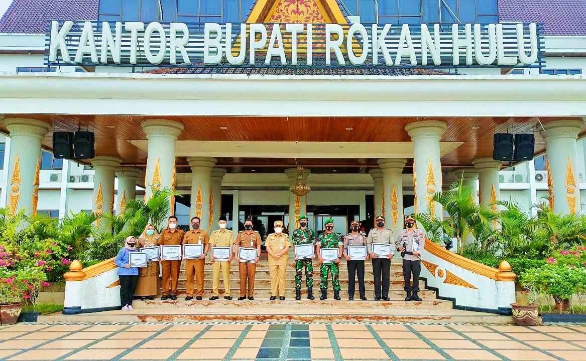 Rohul(SegmenNews.com)- Bupati Rokan Hulu H. Sikiman memberikan piagam kepada penerima penghargaan Vaksinasi Covid 19 tercepat di wilayah Kabupaten Rokan Hulu, Senin (10/1/2022).