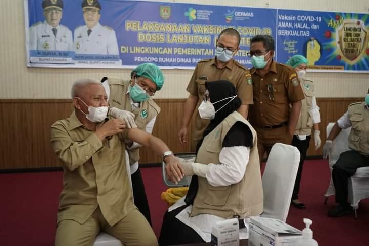 Ini disampaikan Bupati Asahan H. Surya, BSc setelah selesai melakukan vaksinasi covid-19 dosis lanjutan (booster) yang diikuti oleh Sekretaris Daerah Kabupaten Asahan, OPD dan Ketua TP PKK Kabupaten Asahan beserta pengurus.