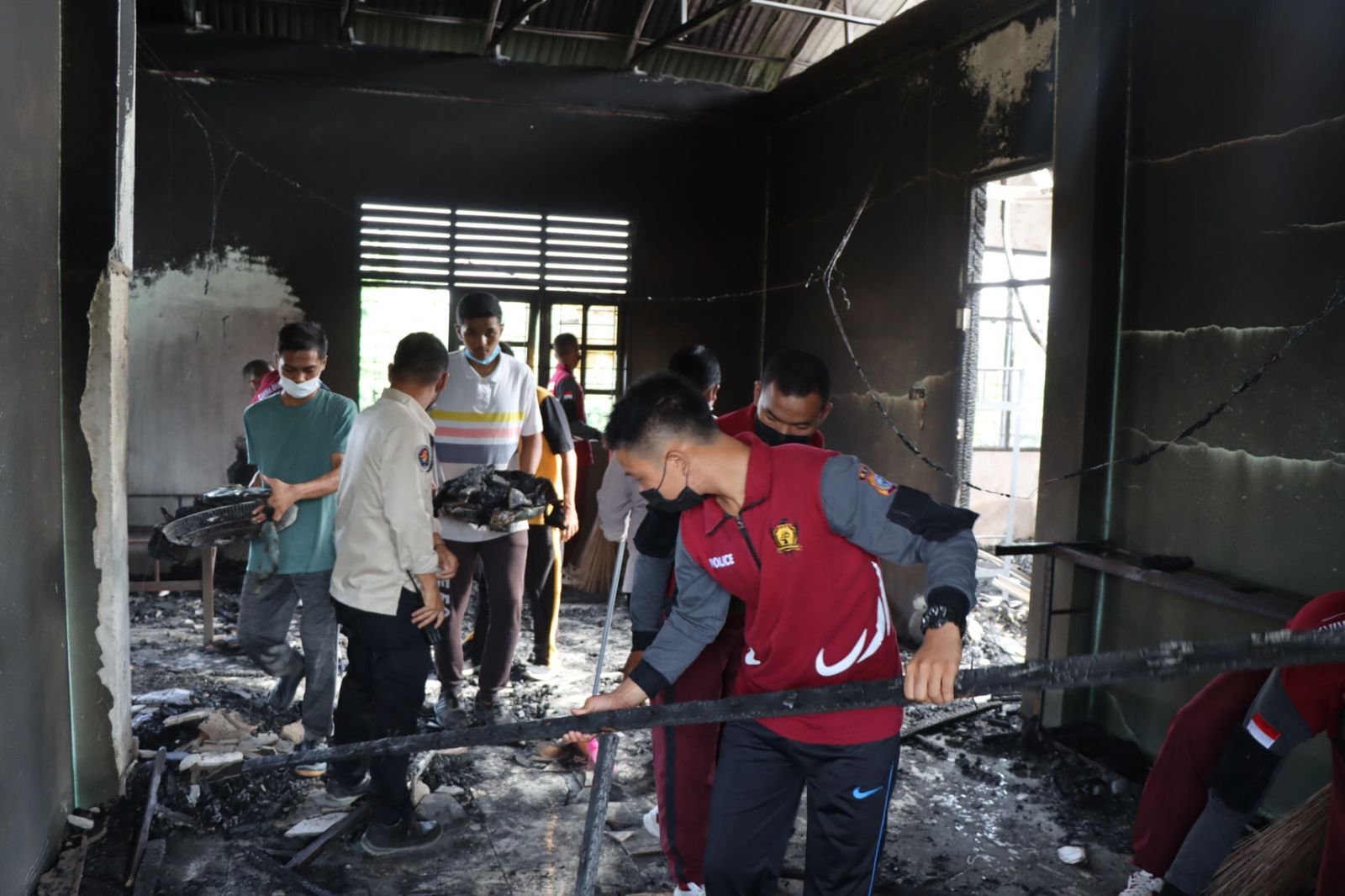 Terlihat dengan tulus dan ikhlas, para Bintara Remaja Polri ini membersihkan puing-puing reruntuhan bekas kebakaran, kemudian mengumpulkannya di satu titik.