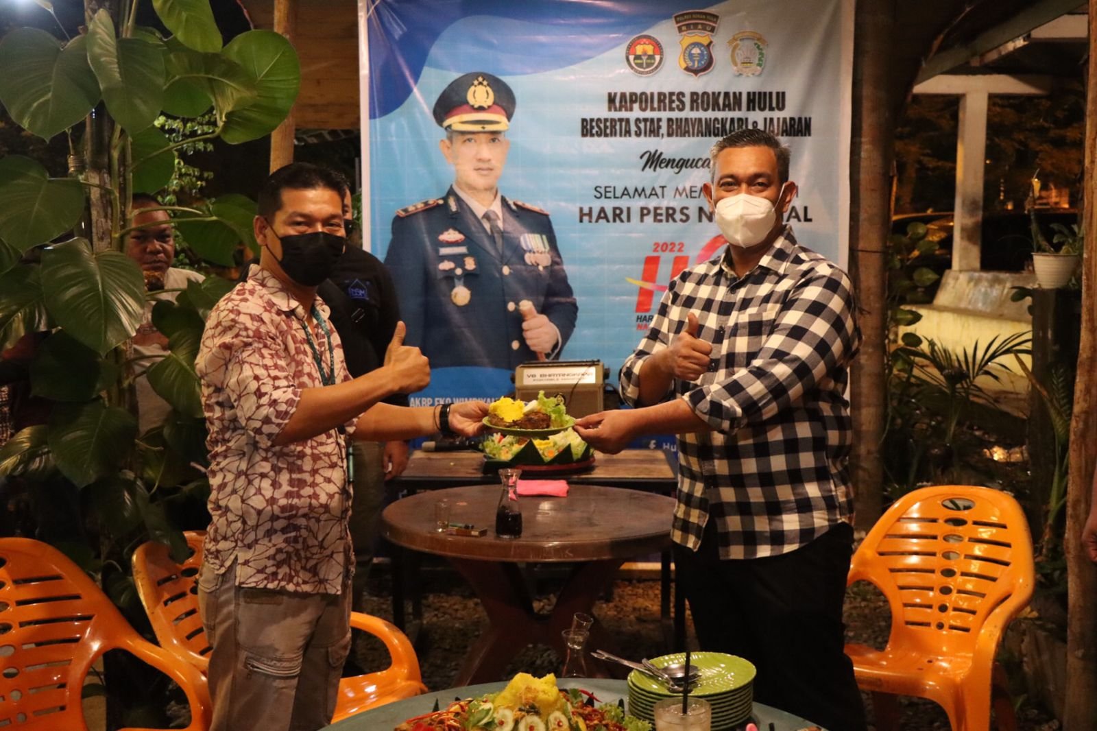 Rohul(SegmenNews.com)- Bersempena Memperingati hari Pers Nasional ke-74 Kapolres Rokan Hulu (Rohul) AKBP Eko Wimpiyanto Hardjito SIK, melakukan Pemotongan Tumpeng jumbo bersama Insan Pers di Jack Cafe, Kelurahan Pasir Pangaraian, Rabu (9/2/2022) malam.