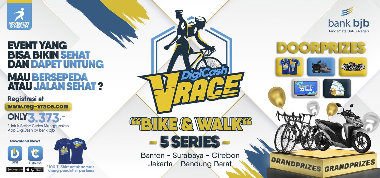 Event Digicash VRace Bike & Walk selanjutnya akan diselenggarakan di Cirebon (series 3) 27 Februari 2022, Jakarta (series 4)13 Maret 2022 dan terakhir di Bandung Barat (series 5) 27 Maret 2022.***(rls)
