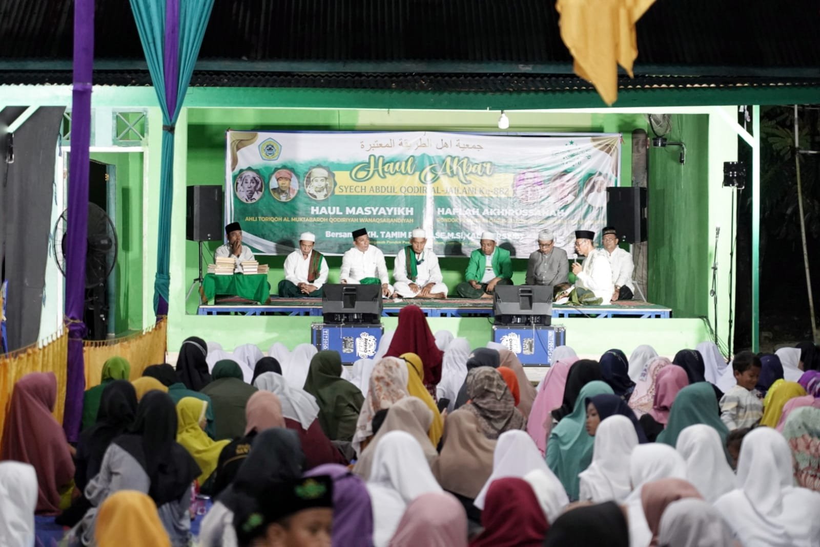 Hadir dalam haul dan haflah tersebut, Pengasuh Pondok Pesantren Darul Ulum Jombang Jawa Timur, Al Mursyid KH. Tamim Romli.