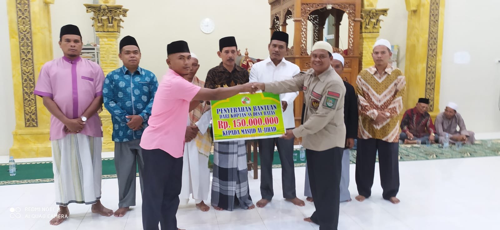 Disela kegiatan Isra’Mi’raj ini ,Ketua Koperasi Tani Sialang Sakti Desa Batas Mintareza Sag menyerahkan bantuan untuk pembangunan Masjid Al-Jihad sebesar Rp.150.juta secara simbolis yang langsung diterima oleh ketua pembangunan masjid bapak Robi Yudistira,