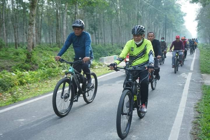 Asahan(SegmenNews.com)- Bersepeda menjadi alternatif olahraga yang bisa dilakukan untuk mengurangi penyebaran Virus Corona karena rendahnya kontak dengan kerumunan, selain itu bersepeda secara rutin juga memiliki banyak manfaat baik bagi kesehatan fisik juga kesehatan mental hal tersebut di ungkapkan Bupati Asahan H. Surya, BSc saat melaksanakan Gowes Bareng bersama Ketua TP. PKK Kab. Asahan Ny. Hj. Titiek Sugiharti Surya, Beberapa OPD dan Komunitas Sepeda Kabupaten Asahan yang mengambil Start dari Rumah Dinas Bupati Asahan, Minggu (06/03/2022).