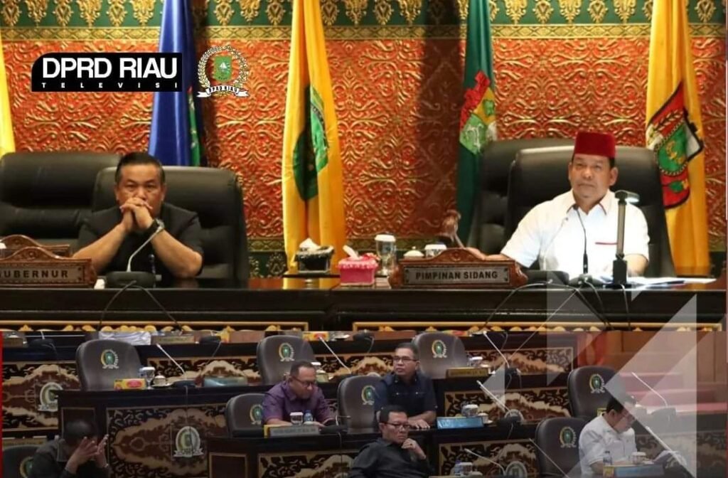Rapat paripurna ini dipimpin oleh Wakil Ketua DPRD Provinsi Riau Syafaruddin Poti, didampingi oleh Wakil Ketua DPRD Provinsi Riau Agung Nugroho dan Hardianto, serta dihadiri oleh perwakilan dari masing-masing Fraksi DPRD Provinsi Riau, yaitu Anggota Fraksi Partai Golkar Yanti Komalasari beserta jajaran, Anggota Fraksi PDI Perjuangan Sugeng Pranoto beserta jajaran, Anggota Fraksi Partai Demokrat Zulkifli Indra beserta jajaran, Anggota Fraksi Partai Gerindra, Wakil Ketua Fraksi PAN Ade Hartati Rahmat beserta jajaran, Anggota Fraksi PKS, Fraksi PKB beserta jajaran, Anggota Fraksi Gabungan (PPP-Nasdem-Hanura) M. Arpah beserta jajaran.