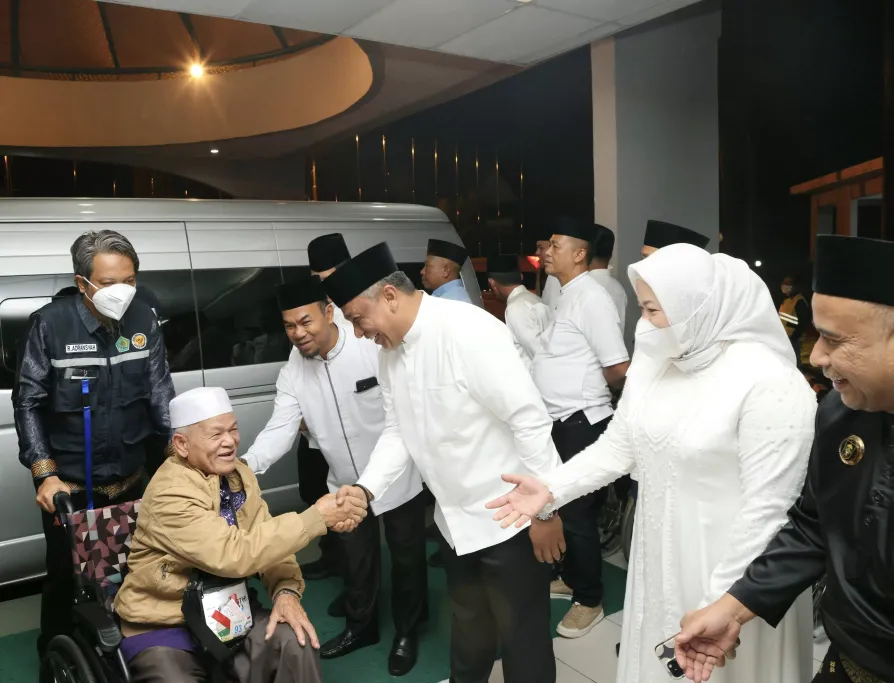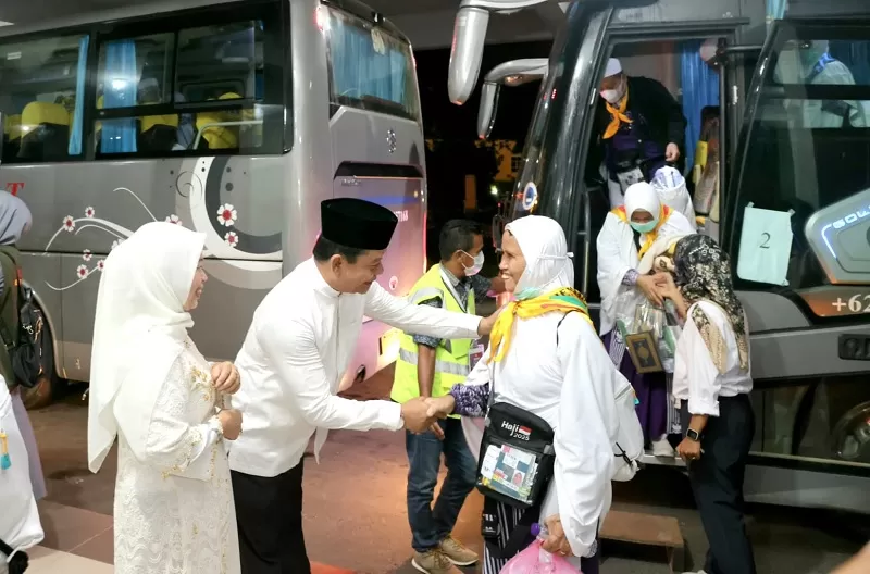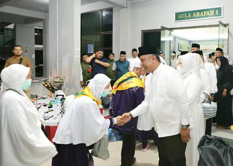 Bupati Rohul Anton ST MM menyampaikan rasa syukur kepada Allah SWT, seluruh JH Kloter 9 BTM khususnya asal Rohul sebanyak 344 orang tiba dengan selamat di Batam. Mesti terlihat kelelahan setelah menempuh perjalanan panjang dari tanah suci ke tanah air.