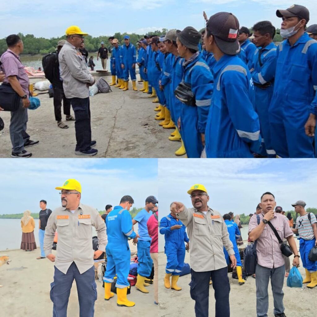 Suwandi S. Sos Kepala Dinas Lingkungan Hidup (DLH) menyampaikan hari ini kita berangkat ke Panipahan Kecamatan Pasir Limau Kapas bersama Satgas sebanyak 60 orang melalui Armada Laut di Pelabuhan Oliong dini hari.