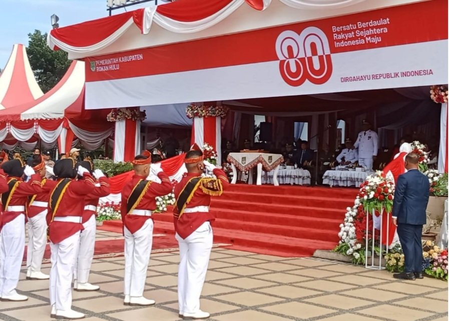 Rohul(SegmenNews.com)- Bupati Kabupaten Rokan Hulu, Anton ST,MM memimpin upacara Hari Ulang Tahun Republik Indonesia ke-80 tahun di halaman kantor bupati, Minggu 7 Agustus 2025.