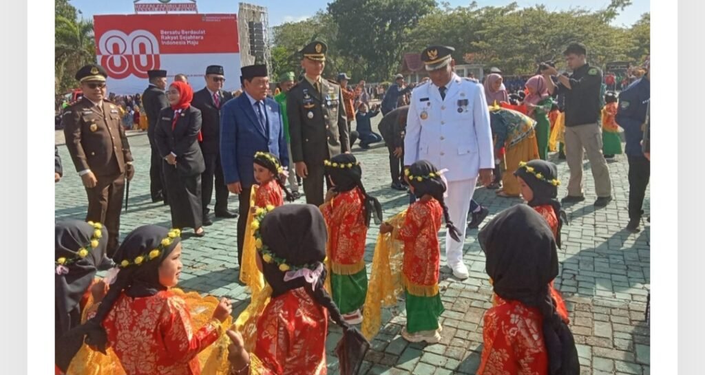 Untuk di ketahui dimana perayaan HUT RI ke-80 Tingkat Kabupaten Rokan Hulu berlangsung meriah, yang mana menjelang detik-detik Proklamasi disuguhkan beragam penampilan dari tarian anak TK dan atraksi bocil Polisi.