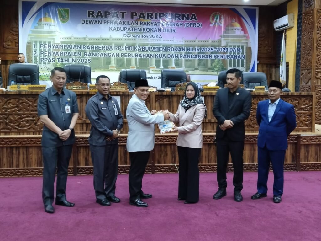 Rokan Hilir(SegmenNews.com)- Dewan Perwakilan Rakyat Daerah (DPRD) Rokan Hilir (Rohil) gelar paripurna penyampaian rancangan peraturan daerah (ranperda) Rencana Pembangunan Jangka Menengah Daerah (RPJMD) Rohil 2025-2029 dan rancangan perpubahan Kebijakan Umum Anggaran (KUA) dan rancangan perubahan Prioritas Plafon Anggaran Sementara (KUA PPAS) 2025 di Bagansiapiapi, Kamis (18/9/2025) malam.