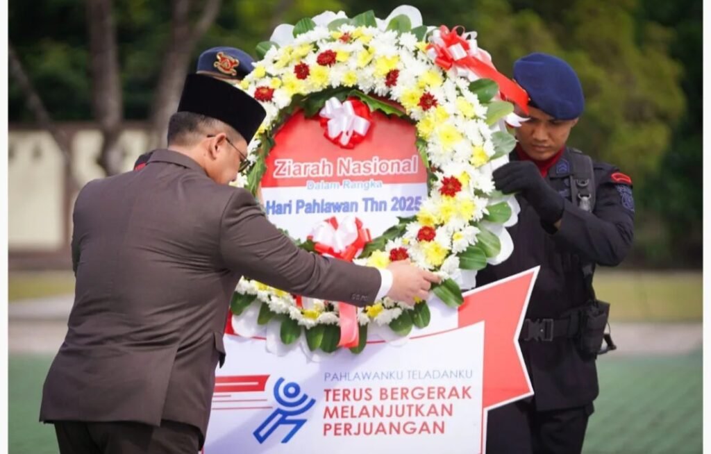 Pekanbaru(SegmenNews.com)- Dalam memperingati hari Pahlawan Nasional tahun 2025, Pemprov Riau diwakili Sekdaprov Riau Syahrial Abdi dan Forum Koordinasi Pimpinan Daerah (Forkopimda) Riau melaksanakan upacara dan tabur bunga di TMP Kusuma Dharma, Senin pagi kemarin. Kegiatan ini menjadi salah satu bentuk penghormatan dan penghargaan terhadap jasa para pahlawan yang telah berjuang untuk kemerdekaan Indonesia.