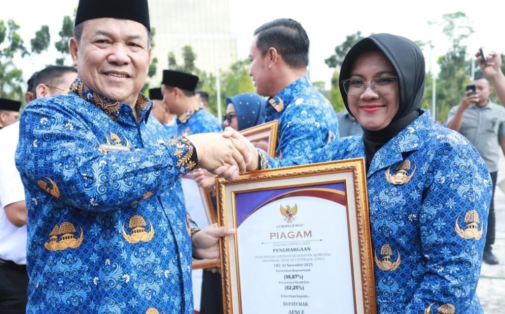 Siak(SegmenNews.com)- Kabupaten Siak meraih Piagam Penghargaan Universal Health Coverage (UHC) pada peringatan Hari Kesehatan Nasional (HKN) tahun 2025.