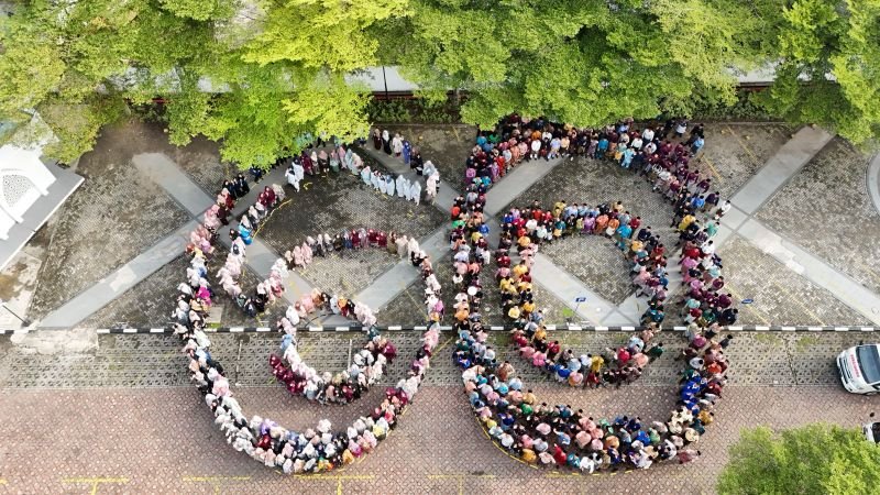 Ratusan peserta bergerak perlahan, membentuk formasi angka “60”. Dari udara, melalui rekaman drone, angka itu terlihat utuh bukan hanya sebagai penanda usia, tetapi sebagai simbol perjalanan panjang yang dibangun bersama.