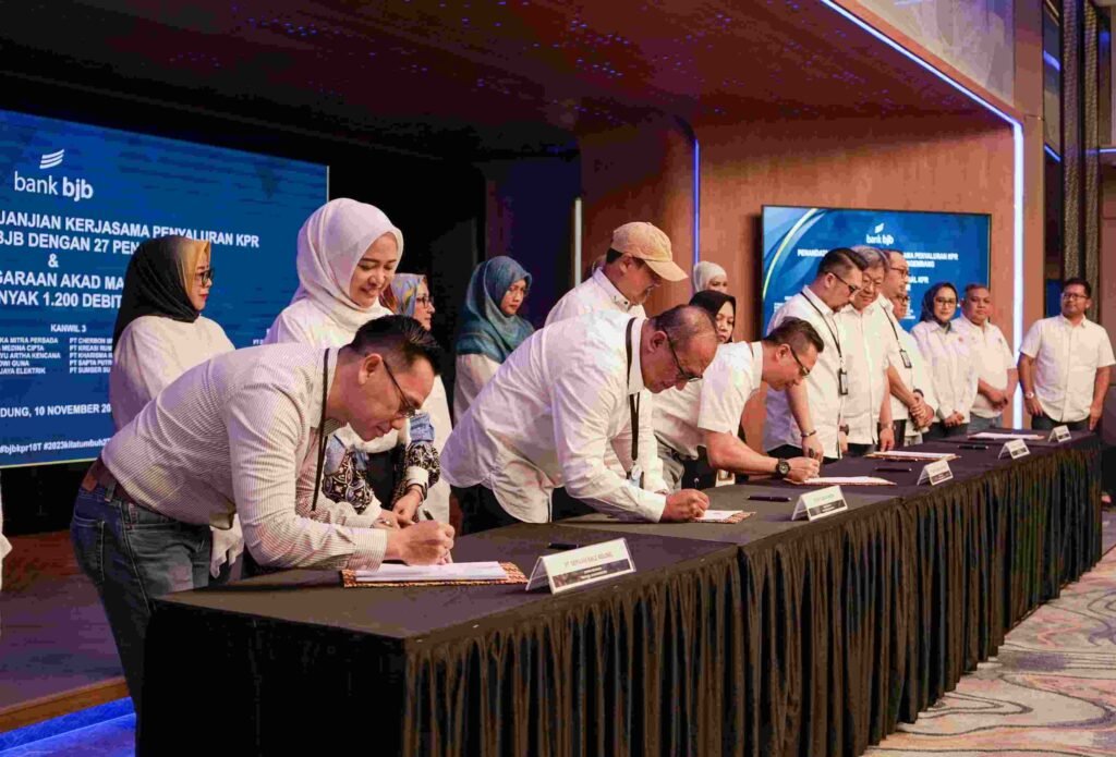 Bandung(SegmenNews.com)- bank bjb berkomitmen untuk mendukung sektor perumahan agar terus berkembang dan bertumbuh. Komitmen tersebut, dibuktikan bank bjb dengan mengadakan penandatanganan Perjanjian Kerjasama Penyaluran Kredit Pemilikan Rumah (KPR) dengan 27 pengembang properti terkemuka, pada Jumat (10/11) di kantor pusat bank bjb. Acara ini juga melibatkan pelaksanaan Akad Massal KPR bank bjb sebanyak 1.200 debitur.