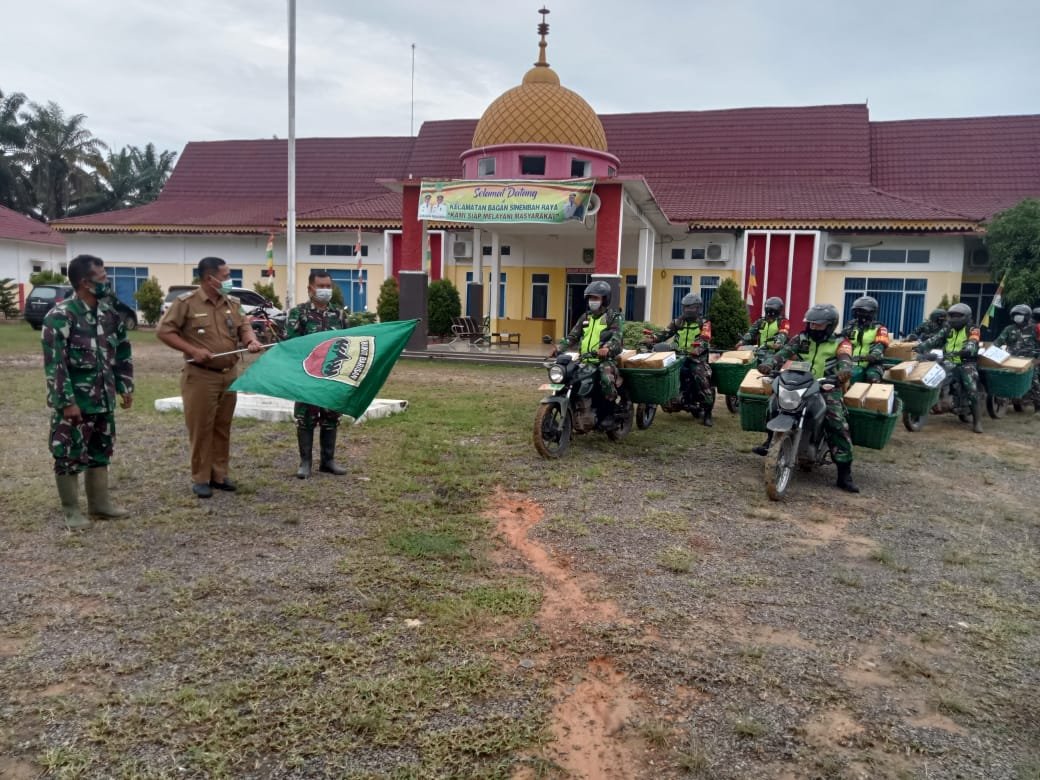 Danramil 03 Bgs Kapten Inf Y Mendrova mengatakan, pembagian sembako ini disebarkan di tiga Kepenghuluan yang ada di kecamatan Basira.