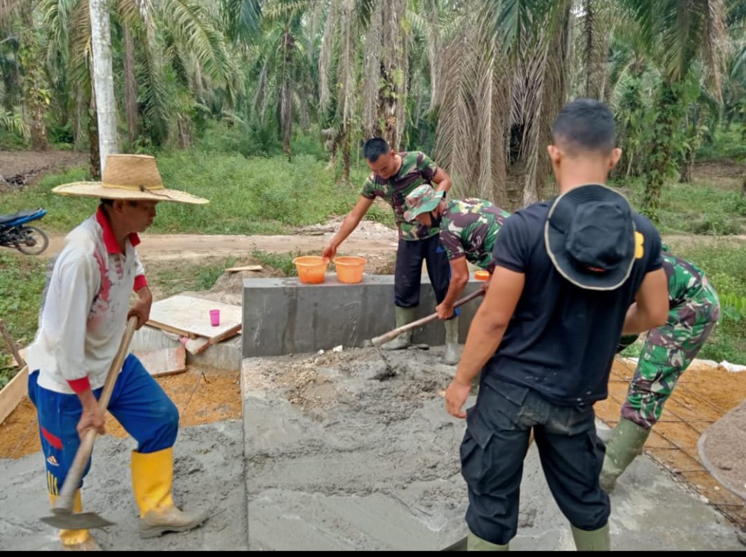 Dipimpin Serka Hendra, TNI dan warga tampak saling bahu membahu dalam pengerjaan box culvert yang selama ini sangat di dambakan masyarakat setempat.