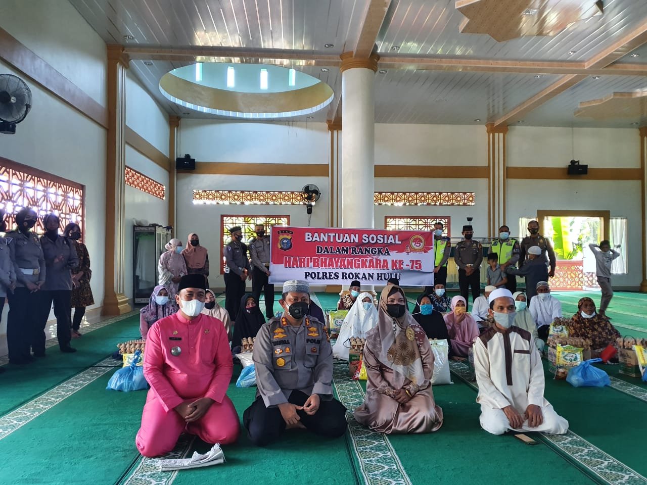 Kegiatan Bhakti Sosial berupa pemberian sembako bagi kaum dhuafa tersebut, Ungkap Kapolres Rokan Hulu AKBP Taufiq LN merupakan rangkaian kegiatan menyambut dan memeriahkan Hari Ulang Tahun Bhayangkara ke 75 tahun 2021.