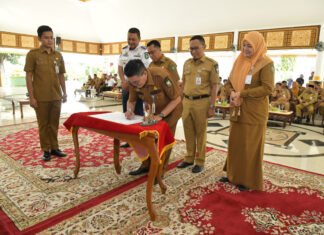 Bengkalis(SegmenNews.com)- Bupati Bengkalis, Kasmarni secara tegas akan menerapkan sistem penghargaan (reward) dan hukuman (punishment) bagi Perangkat Daerah dalam penilaian Sistem Akuntabilitas Kinerja Instansi Pemerintah (SAKIP).