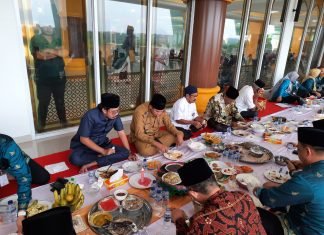 Wako Pekanbaru Makan Bajambau di teras Masjid Agung Paripurna Al Firdaus