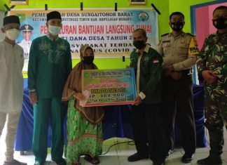 Meranti(SegmenNews.com)-Kodim 0303/Bengkalis melalui Babinsa Koramil 02/Tebing Tinggi Serma Agus WP mengawasi dan memantau penyaluran Bantuan Langsung Tunai (BLT-DD) di Desa Sungai Tohor Kecamatan Tebingtinggi Timur, Kabupaten Kepulauan Meranti, Sabtu (20/11/2021).Danramil 02 Tebing Tinggi Mayor...