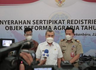 Pekanbaru(SegmenNews.com)- Sebanyak 124.120 sertipikat redistribusi Tanah Objek Reforma Agraria (TORA) diserahkan kepada masyarakat secara simbolis oleh Presiden RI Joko Widodo (Jokowi) di Istana Kepresidenan, Bogor Jawa Barat, Rabu (22/9/2021).Dari total sertipikat yang diserahkan, Provinsi Riau...