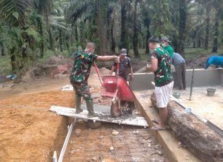 Rohil(SegmenNews.com)- Di pimpin Sertu Dedi Purnama, Satgas TMMD bersama warga kembali lanjutkan pembangunan box culvert yang berada di Kepenghuluan Bagan Sinembah Jaya Kecamatan Basira Kabupaten Rohil, Jumat (9/7/2021).