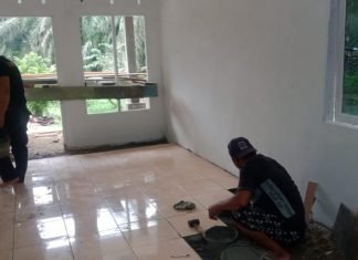 Rahab Rumah Halimah, Anggota Satgas TMMD Selesaikan Pemasangan Keramik