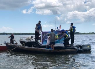 Meranti(SegmenNews.com)-Personel kepolisian dari Satuan Polisi Perairan (Satpolair) Polres Kepulauan Meranti, Riau, melakukan patroli di perairan Selatpanjang, Selasa (11/5/2021)Patroli kali ini menyisir sejumlah pelabuhan nelayan. Sembari membagikan sembako, mereka menyampaikan imbauan tentang protokol kesehatan dan...