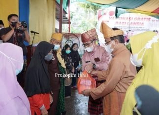 Inhil(SegmenNews.com)- Bupati Inhil, Drs HM Wardan MP bersama istri selaku Ketua Koordinator Kegiatan Kesejahteraan Sosial (K3S) Kabupaten Inhil, Hj Zulaikhah Wardan SSos ME bersilaturahmi dengan para lansia, baru-baru ini.