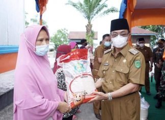 Bupati Inhil Salurkan Bantuan Beras PPKM bagi Keluarga Penerima PKH & BST