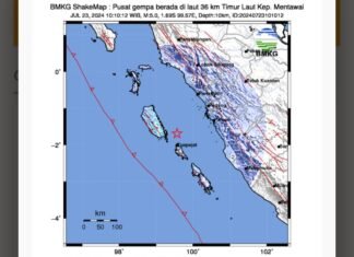 Padang(SegmenNews.com)- Gempa bumi berkekuatan Magnitudo 5,0 mengguncang Kepulauan Mentawai, Sumatera Barat, Selasa (23/7).Getaran gempa M 5,0 yang mengguncang Kepulauan Mentawai terjadi pada pukul 10.10 WIB. Guncangan gempa terasa hingga Kota Padang, Sumbar.Badan Meteorologi Klimatologi...