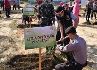 Pekanbaru(SegmenNews.com)- Wakil Ketua DPRD Kota Pekanbaru, Ginda Burnama melaksanakan kegiatan menanam pohon bersama Kapolresta Pekanbaru, Kombes Pol Jeki Rahmat Mustika S.I.K.Pemanaman pohon tersebut dalam Rangka Hari Bhayangkara ke-78 Tahun, Kamis (27/06/2024).Kegiatan yang dilaksanakan diberbagai...