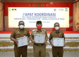 Rohul(SegmenNews.com)-Bupati Rokan Hulu (Rohul) H.Sukiman Hadiri Rapat Koordinasi Program Pemberantasan Korupsi Terintegrasi (PPKT) Bersama Pimpinan Komisi Pemberantasan Korupsi (KPK) yang dihadiri oleh Kepala Daerah Kabupaten/Kota se - Provinsi Riau,Sekda se Provinsi Riau,Serta Kepala BPN...