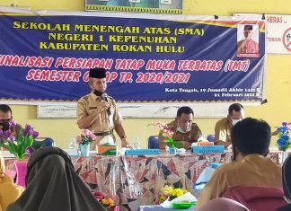 Rohul(SegmenNews.com)- SMAN 1 Kepenuhan, Kabupaten Rokan Hulu adakan rapat Finalisasi Persiapan Pembelajaran Tatap muka trerbatas disemester genap tahun pelajaran 2020/2021, Senin (01/02/2021) bertempat di aula SMA Negeri 1 Kepenuhan Kab. Rokan Hulu.Hadir dalam rapat...