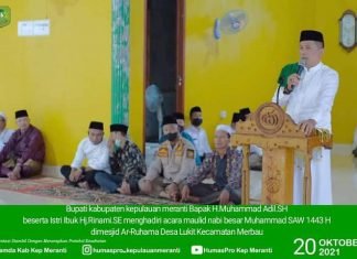 Enok(SegmenNews.com)- Peringatan Maulid Nabi Muhammad SAW 1443 H yang dilaksanakan Majelis Ar-raudhah Parit H.Arif RT.016 RW.005 Dusun Suhada Desa Suhada Kecamatan Enok dihadiri Wakil Bupati Kabupaten Indragiri Hilir.