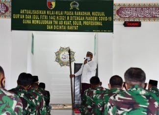 Kota Malang(SegmenNews.com)- Pelaksanaan Nuzulul Qur’an di Makorem 083/Baladhika Jaya kali ini, Jumat, 07 Mei 2021 siang, berbeda dari tahun-tahun sebelumnya.Pasalnya, pelaksanaan kegiatan itu tak terlepas dari adanya protokol