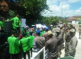 Aksi mahasiswa di kawal pihak Kepolisian dan Satpol PP juga Koramil Rambah itu disambut baik oleh Ketua DPRD Rohul Novliwanda...