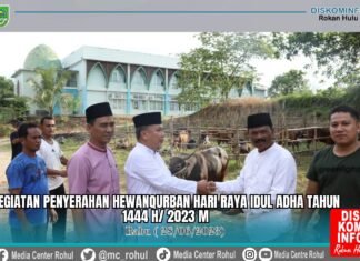 Rohul(SegmenNews.com)- Pemerintah Kabupaten Rokan Hulu satu hari jelang Idul Adha 1443 H /2023 M di halaman pelataran Masjid Agung Islamic Center Pasir Pengaraian menyerahkan hewan kurban yang bersumber dari ASN kepada pengurus Islamic Center...